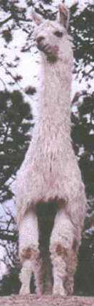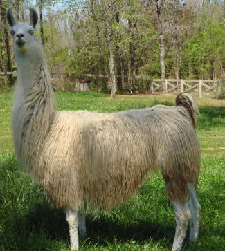 | This girl has it all in conformation and fiber. She has locked suri fiber with natural luster and a soft, cool hand. Looking for girls with long necks? Here ya go. Her neck is not only long and graceful but is proportionate to her body. She has good width to her legs and a floating gait that she has passed on to both her male and female cria. Her grand-sire is Newevo, the highest selling llama in the world at $210,000 and her dam was one of the Burgess' favorites, FFF Grey Dawn. We have photos of her siblings for genetic reference purposes only, upon request.
