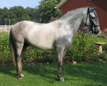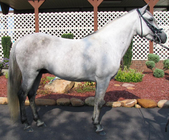 You have to look twice to make sure this guy is a stallion. He is ridden by two girls ages 4 and 7 and all beginner riders. | Santana de Ate "Carlos"Panorama de la Ate x Claudia la Ate 97 Gray Stallion 13.2 Hands Pleasure Gaited (Double Bred Caruso de la Ate)Live Cover Only |